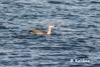 Out in the distance two Red Throated Divers fed close together, one in breeding plumage and the other in winter plumage (this one very white colour)