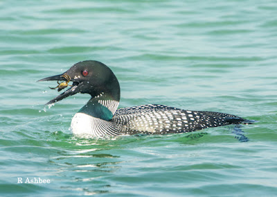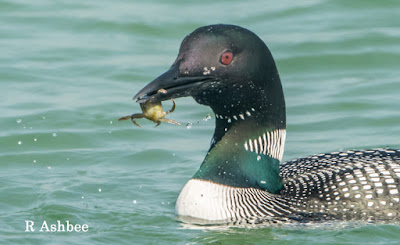 On one occasion it surfaced with a small crab, but this caused so many problems. The crab was very lively and just didn't want to be swallowed.