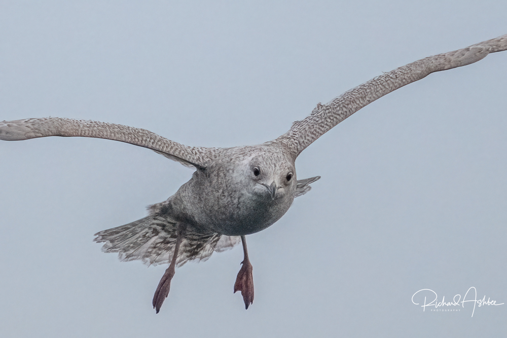 Throwing some bread attracted all the gulls from the roof of the fish processing factory.