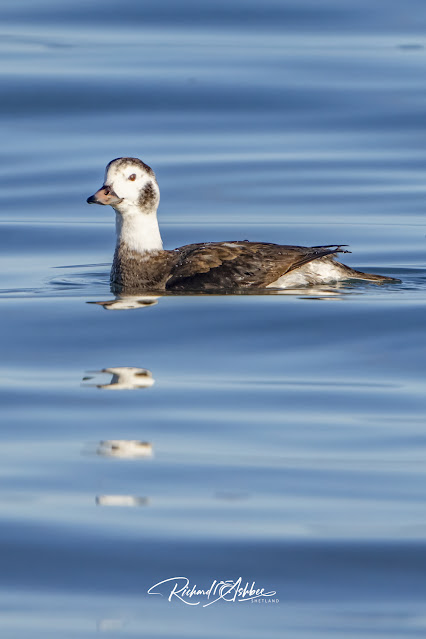 Although most are on freshwater there are also a small number of the sea and this male was down at Grutness.Elsewhere we still have some American birds with the Bufflehead still at Hilllwell along with an American Wigeon and another American wigeon at Spiggie along with an American Coot. The Ross/s Goose has moved to Toft today